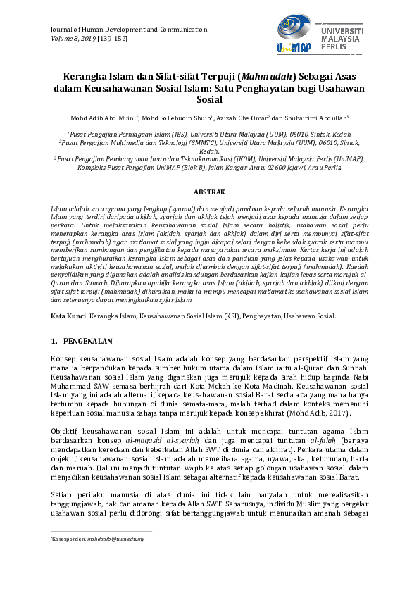 Pdf Kerangka Islam Dan Sifat Sifat Terpuji Mahmudah Sebagai Asas Dalam Keusahawanan Sosial Islam Satu Penghayatan Bagi Usahawan Sosial Mohd Adib Abd Muin And Shuhairimi Abdullah Academia Edu